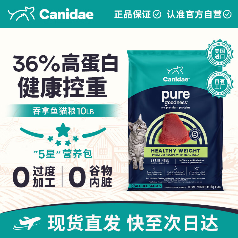 【京东商城】【食品保健】卡比(CANIDAE)进口猫粮 吞拿鱼减肥减重猫粮成猫幼猫通用4.5