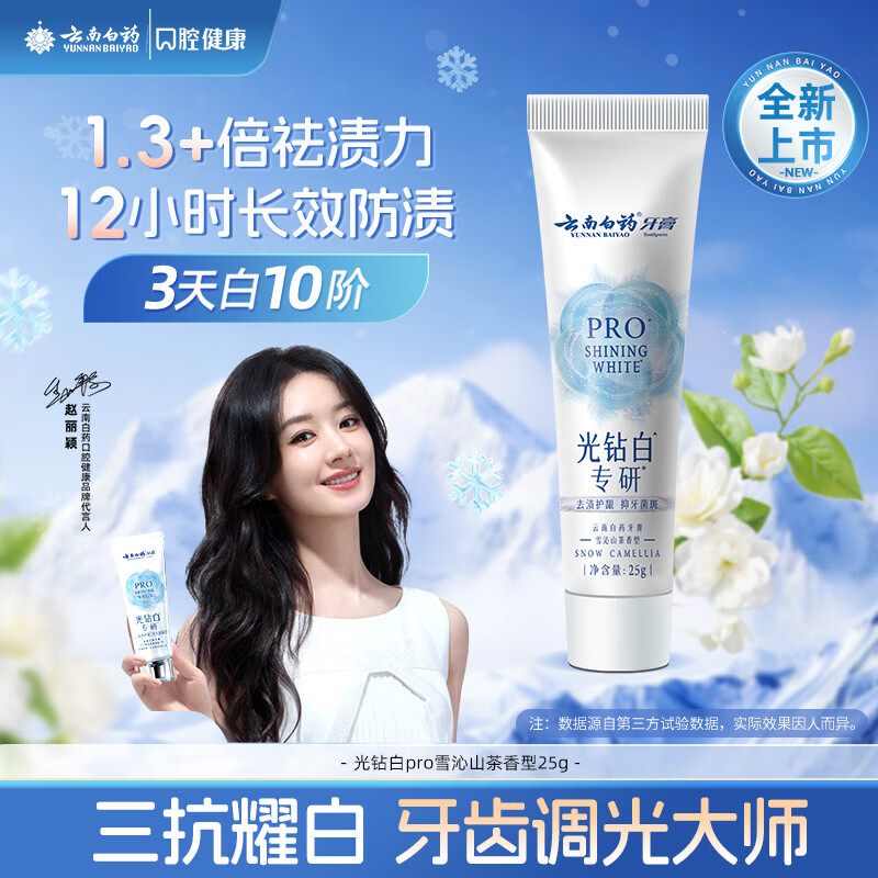 【京东商城】【美容美妆】云南白药新品牙膏光钻白PRO 美白抗牙菌斑牙结石呵护牙龈雪