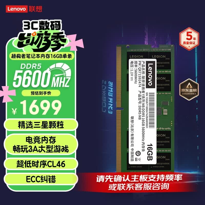 【京东商城】【电脑办公】联想(Lenovo) 拯救者Y系列16GB DDR5 5600频率 笔记本内存条 三