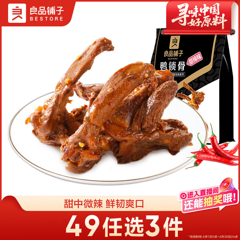 【京东商城】【食品保健】良品铺子鸭锁骨甜辣味200g 熟食卤味 休闲零食 办公室解馋 网