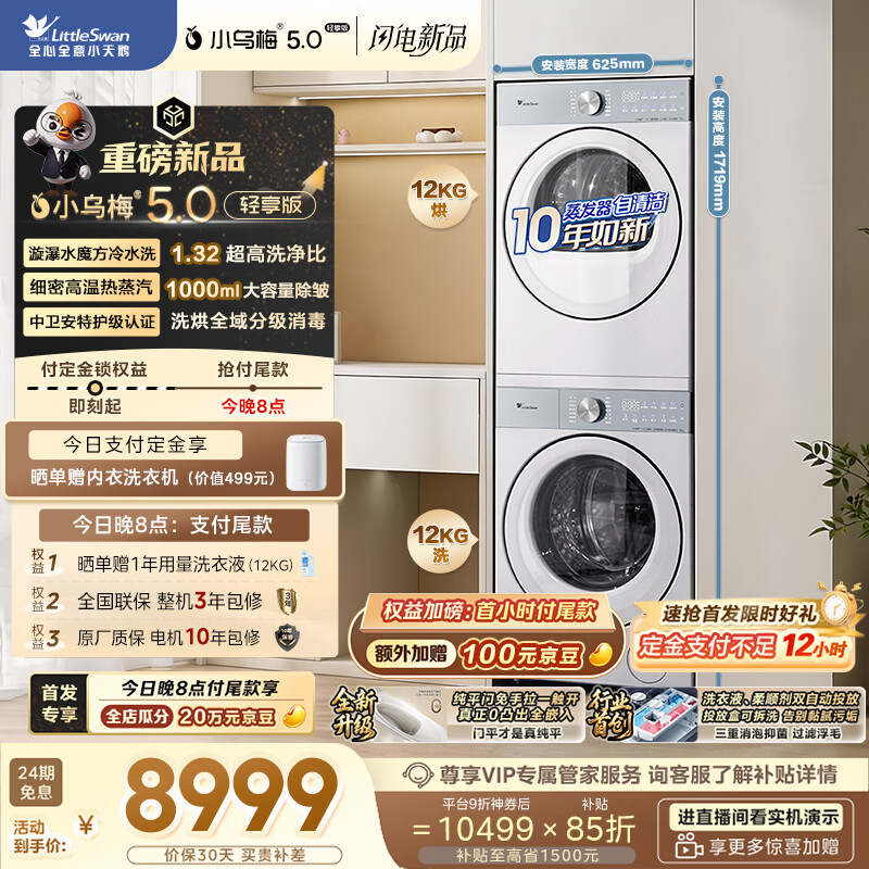 【京东商城】【生活家电】小天鹅(LittleSwan)小乌梅5.0轻享版 洗烘套装 12KG大容量 滚筒