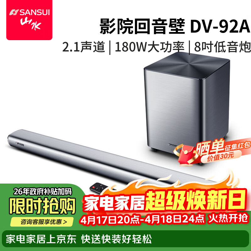 【京东商城】【生活家电】山水(SANSUI)DV-92A 回音壁音响 音箱 家庭影院 Soundbar电视音
