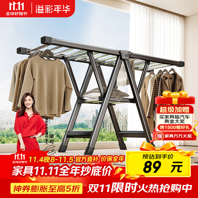 溢彩年华晾衣架落地衣架折叠挂衣架阳台晾衣杆室内晒衣服架晒被子架子4147