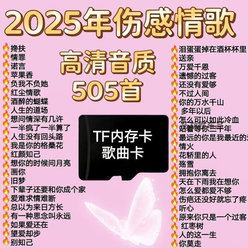 行后2025抖音网络流行伤感情歌TF内存卡高品质音乐车载插卡收音机耳机 2025伤感情歌 2 首歌曲(内存卡)