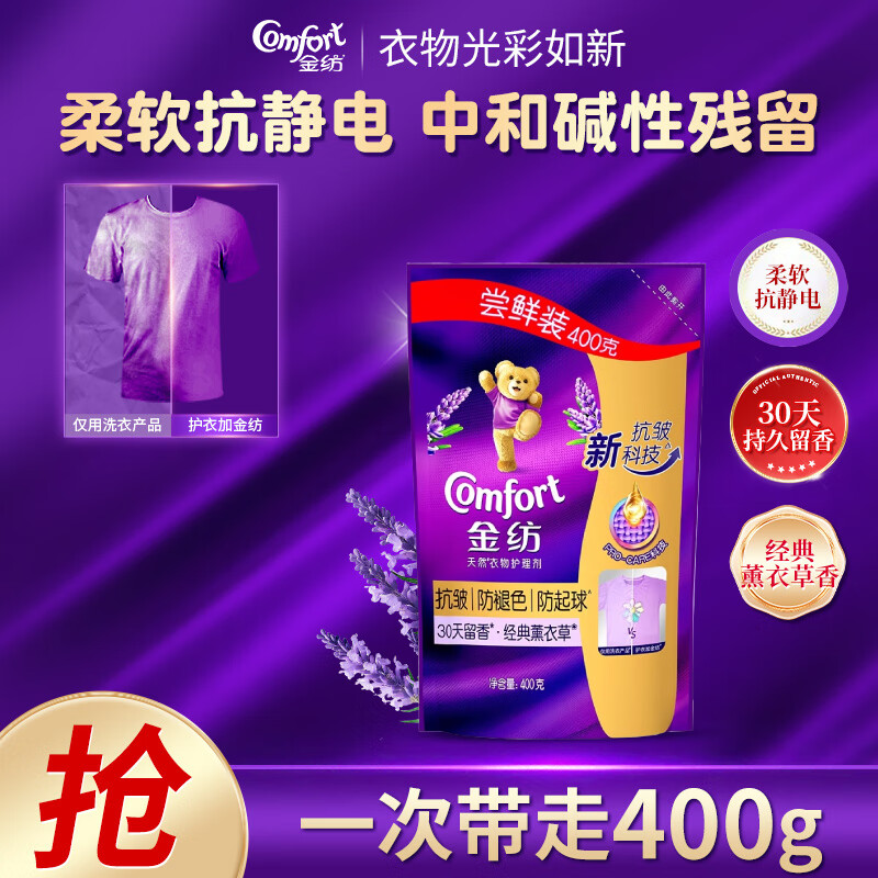 金纺衣物护理柔顺剂薰衣草香型防静电抗皱防褪色防起球持久留香 金纺柔顺剂薰衣草400g