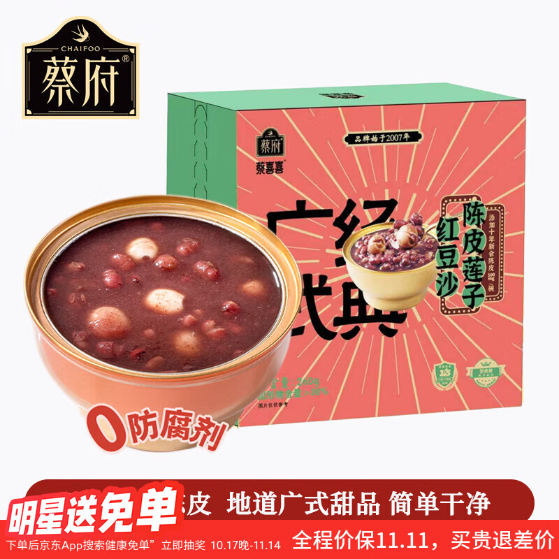 蔡府(CHAIFOO)陈皮莲子红豆沙260g*1碗尝鲜装即食速食营养早餐养生粥代餐粥