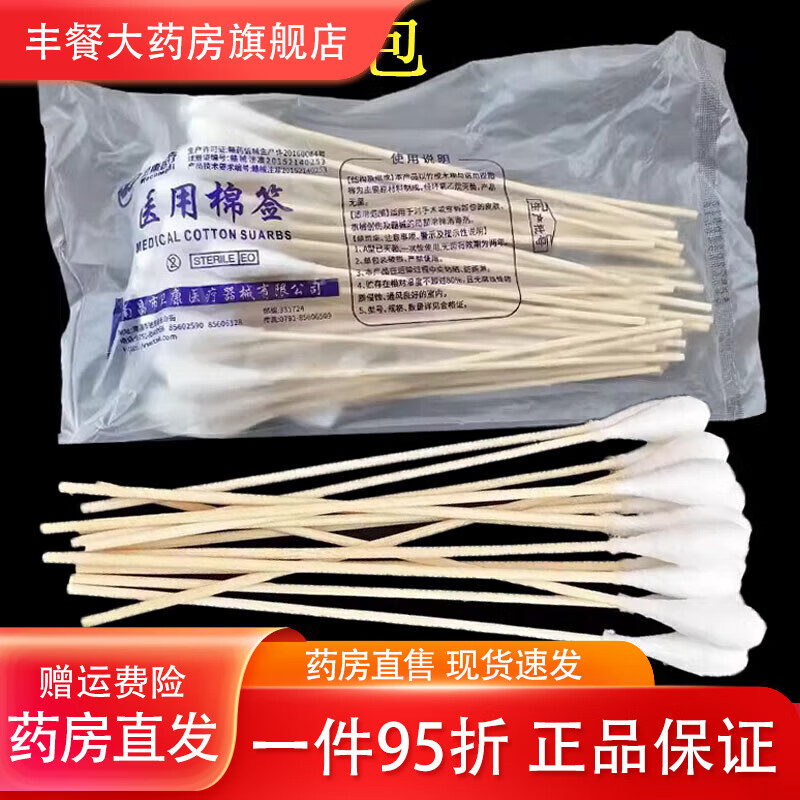 通用康晴一次性大头长棉签无菌消毒妇科专用大棉签20CM脱脂大xm 2包[100只]