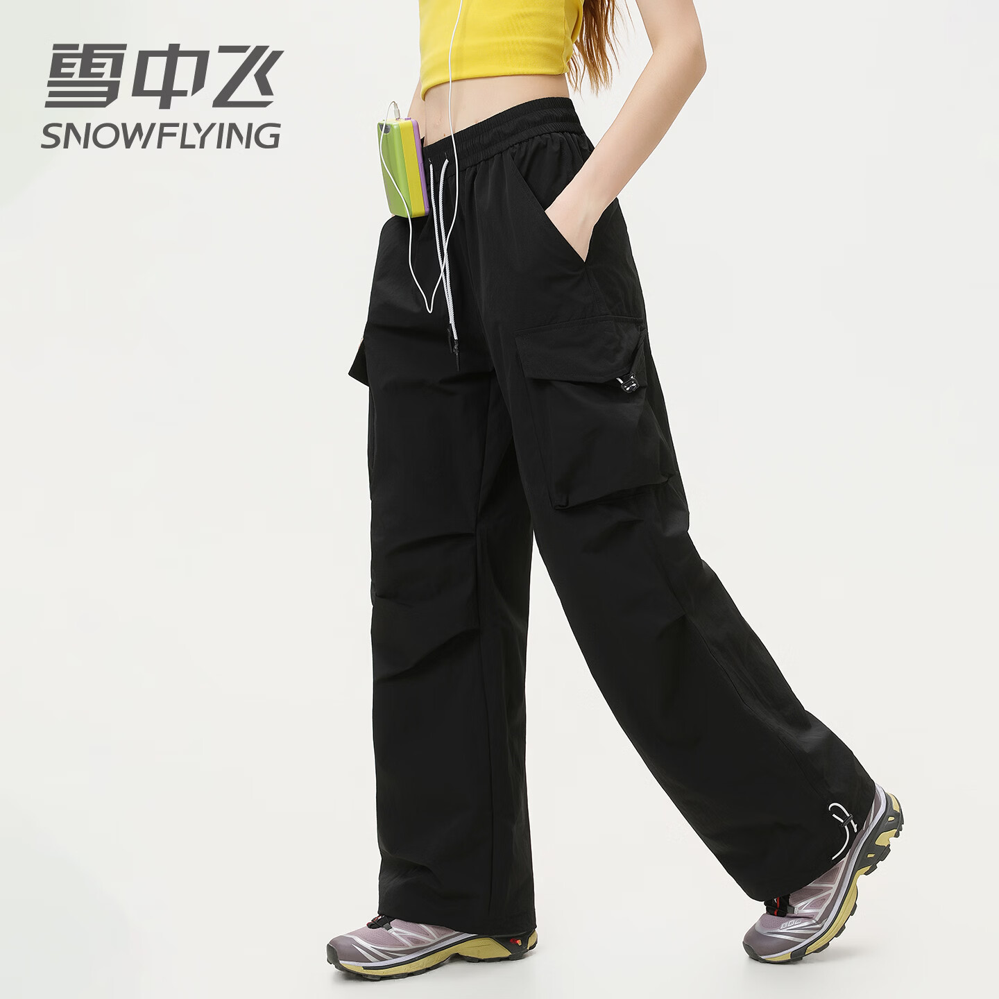 雪中飞直筒工装裤女2026新款户外时尚显瘦束脚两穿休闲春秋冲锋长裤子 黑色 190/92A 3XL