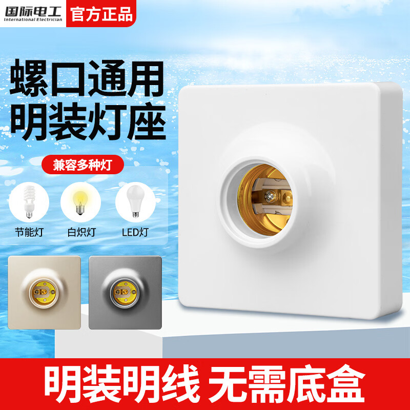 国际电工明装E27通用螺口灯座LED灯泡螺旋灯头方形螺纹灯口家用节能灯底座 白色E27螺口明装灯座