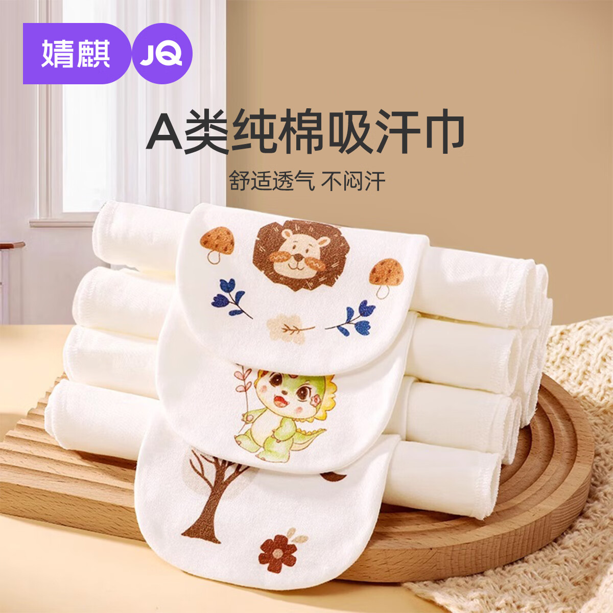 婧麒(JOYNCLEON)儿童纯棉吸汗巾婴儿隔汗巾幼儿园宝宝垫背巾透气6条装 Jyp157256