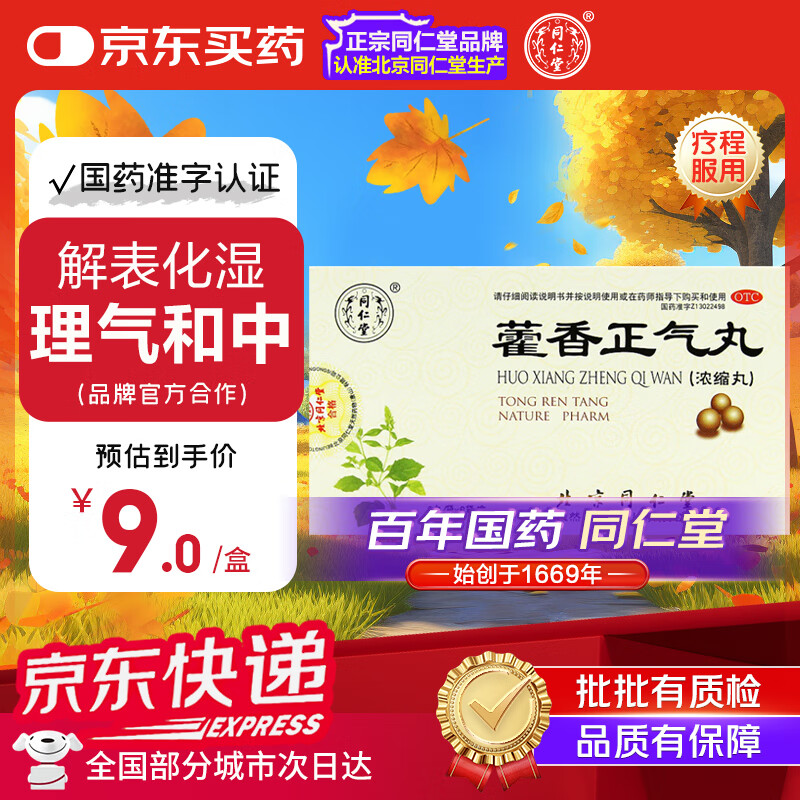 同仁堂 藿香正气丸 (浓缩丸) 8丸*6袋解表化湿理气和中暑湿感冒