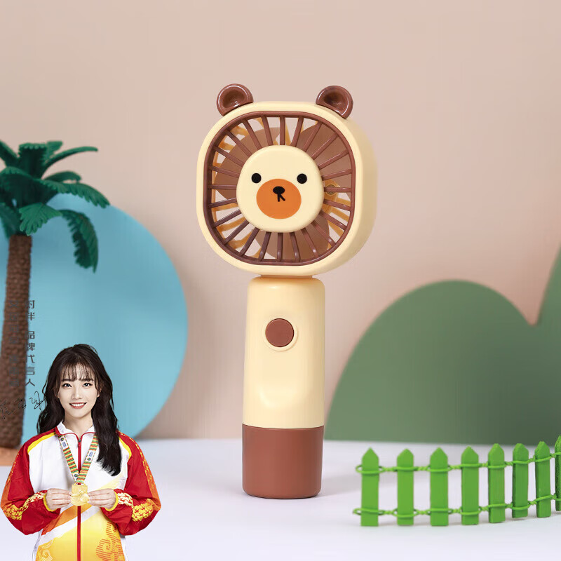 对伴【甄选】萌熊手持迷你桌面小风扇 充电式学生 可爱便携式轻质 五 浅黄色