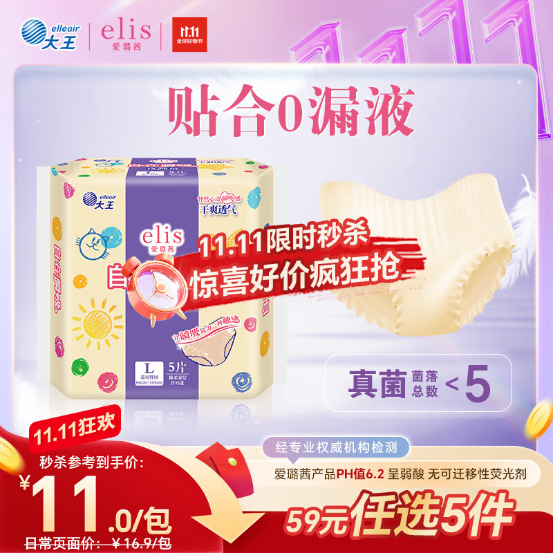 爱璐茜(elis)大王自在瞬吸安睡裤L码5条超薄夜用裤型卫生巾姨妈拉拉裤京东自营