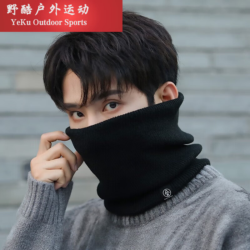 糜岚(MieLanat)户外冬季男保暖脖套女加绒加厚防寒面罩骑行防风护脸护颈围巾 针织加厚脖套[黑色]