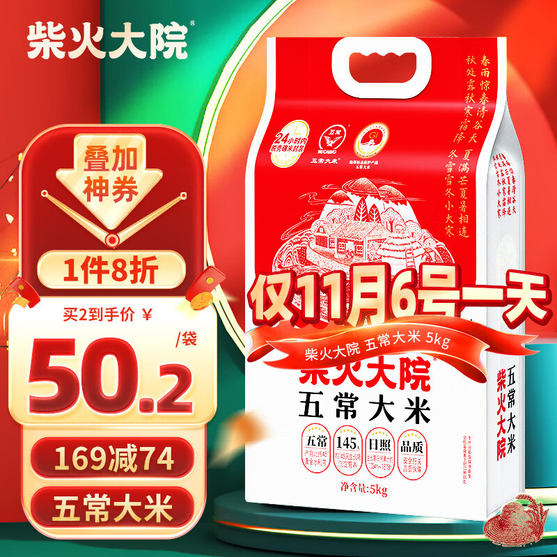 柴火大院 五常大米5kg 【2025年新米】 东北大米5公斤