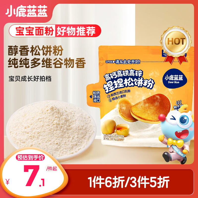小鹿蓝蓝儿童松饼面包粉100g/袋钙铁锌面粉预拌粉早餐自制烘焙原料糕点