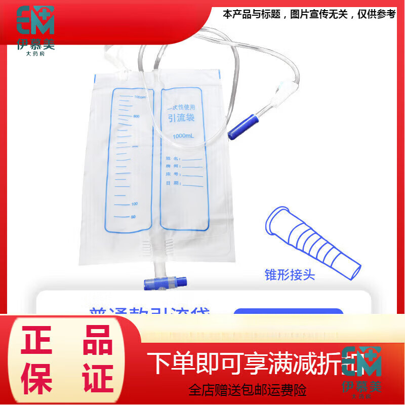 通用引流袋一次性使用防逆流尿袋无菌集尿器男女老人用接尿袋加厚 1 [1个]普通型1000ml[锥形接头