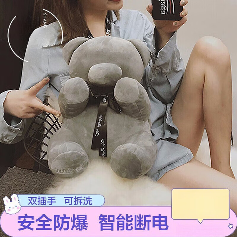小米锅巴充电热水袋可爱卡通毛绒可拆洗暖手宝电热宝双插手暖水袋电热水袋 绅士熊-双插手[防爆充电器] 安全防爆+智能断电