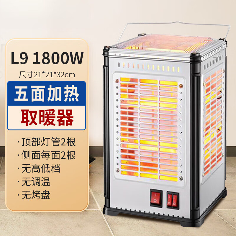 小米锅巴潮流生活电器五面取暖器烧烤型 家用全方位五面取暖器四面烤火炉烧烤型小太阳速热电暖气电火炉 银色【小款顶2侧2管]非烧烤型 五面加热+静音运行