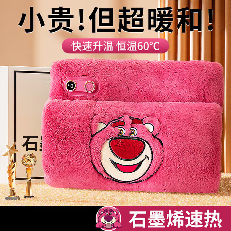 小米锅巴热水袋充电暖手宝石墨烯暖水袋暖宝宝女生用姨妈神器生日新年礼物 草莓熊石墨烯暖手宝5000mah 三档温度+快速制热+智能数显