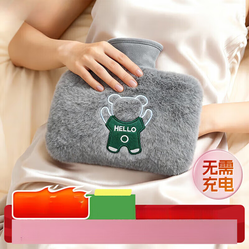 小米锅巴热水袋注水暖水袋暖手宝大号防爆大容量双插手热敷姨妈神器1200ml 加大号双插手灰色[外套可拆洗] 安全防爆+双插手+可拆洗