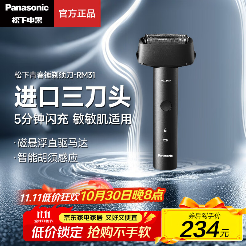 松下(Panasonic)电动剃须刀青春锤便携独立3刀头不伤肤防水送男友礼物RM31 黑色