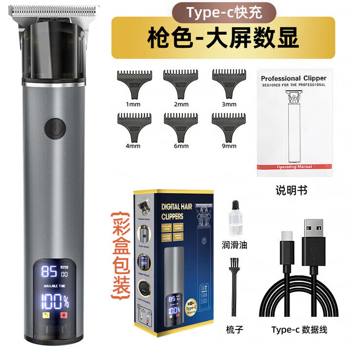 米飞利蒲理发剃须一体机男士专用刮胡刀电动电推子自己剪光头神器电动剃头自助自理发器电推剪 枪色/精钢刀头/大屏数显[快充] 精钢刀头+大屏数显+理发剃须一体