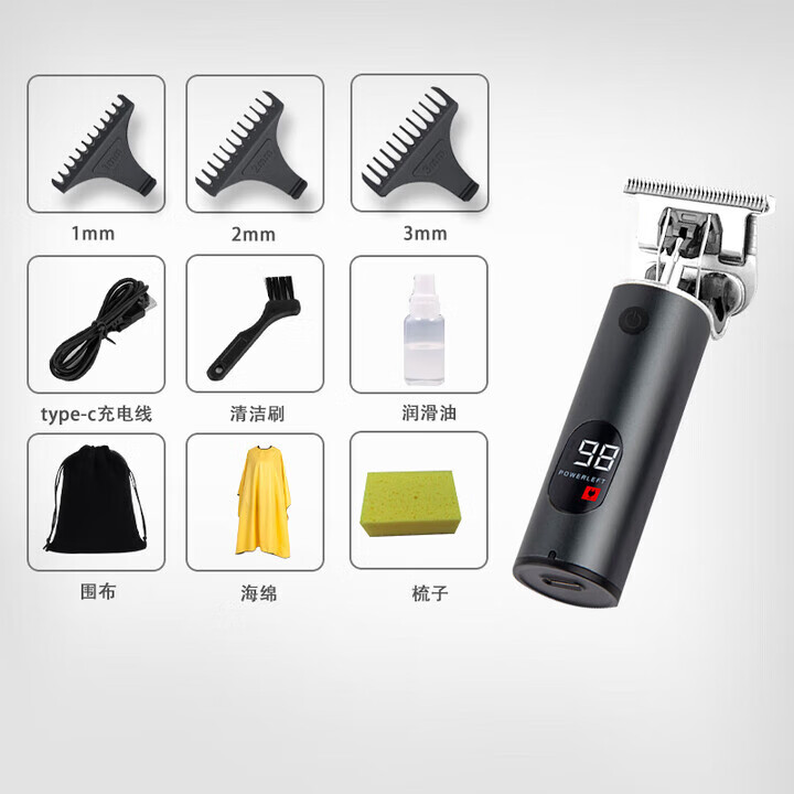 米飞利蒲电动剃须刀理发器刮胡刀两用刮胡子一体机剃头刀电推子电推剪剪头发神器多功能理发剃须刀二合一 黑色迷你小数显款 理发剃须二合一+头发神器+多功能
