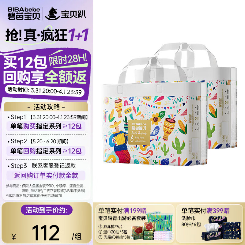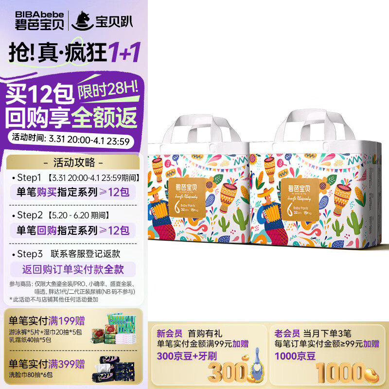 碧芭宝贝【会员专享】丛林狂想曲拉拉裤婴儿成长裤训练裤透气大号尿不湿 拉拉裤XXL32片*2包(15kg以上)