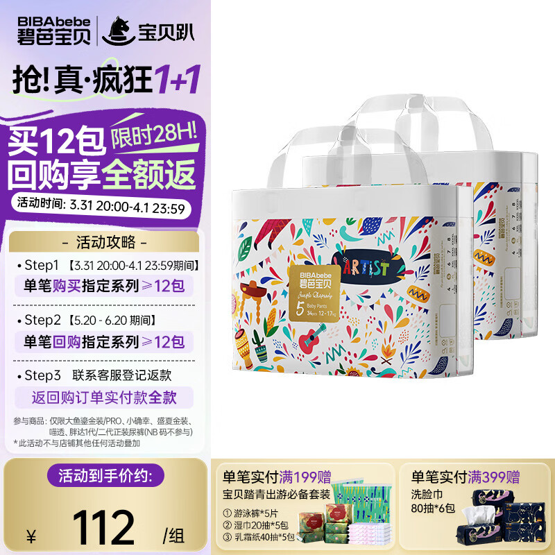碧芭宝贝丛林狂想曲拉拉裤 婴儿成长裤宝贝训练裤透气大号尿不湿 拉拉裤XL34片*2包(12-17kg)