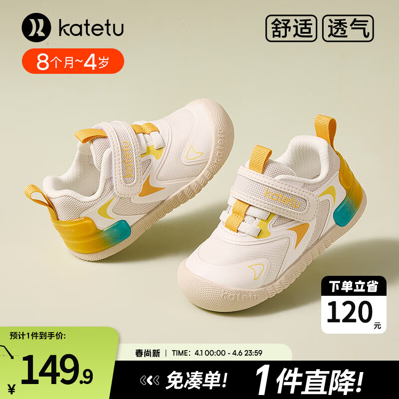 卡特兔婴儿学步鞋2026春季新款童鞋幼儿园软底宝宝室内鞋防滑机能鞋 米白黄 19 内长12.0cm 脚长11.0-11.5