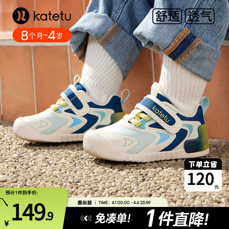 卡特兔婴儿学步鞋2026春季新款童鞋幼儿园软底宝宝室内鞋防滑机能鞋 白蓝 22 内长13.5cm 脚长12.5-13.0