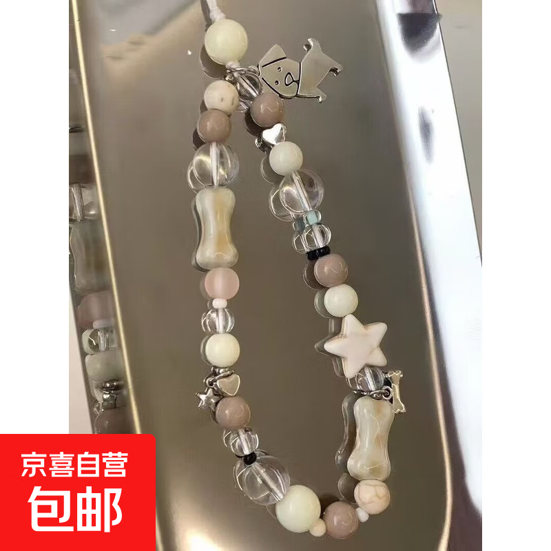 原创手工串珠手机挂链挂绳可爱童趣手腕短款ccd相机链挂饰总动员卡通 金属狗狗挂链