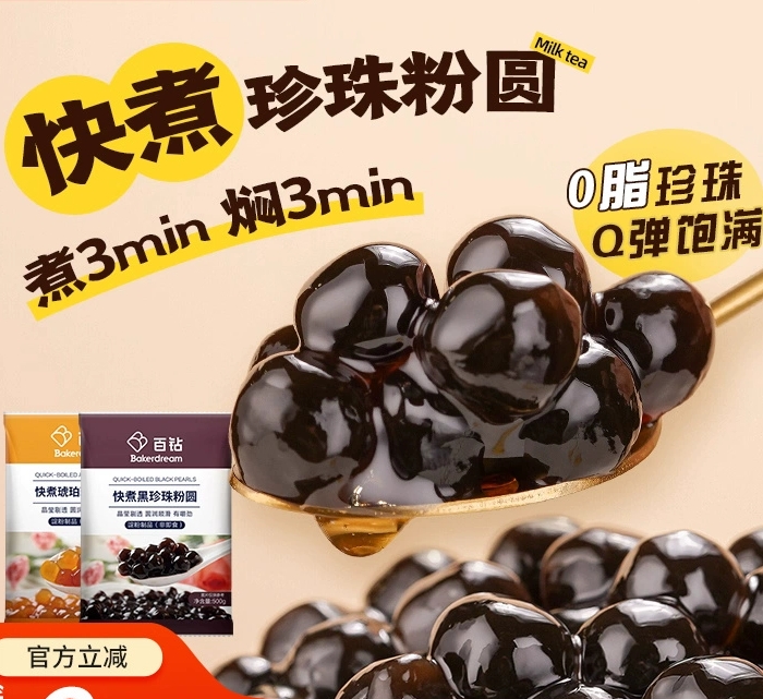 旗舰店售价9.9元,官方立减0.99元,到手8.91元! 自制做珍珠奶茶,珍珠粉圆原料,颗颗Q弹饱满有嚼劲,冷饮店必备,在家自己做更美味,不添加防腐剂,绿色健康食材,美味随心配,给生活加点料!