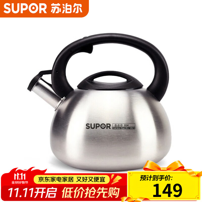 苏泊尔(SUPOR)烧水壶天然气煤气燃气灶电磁炉通用304不锈钢烧水壶老式鸣音3.5升