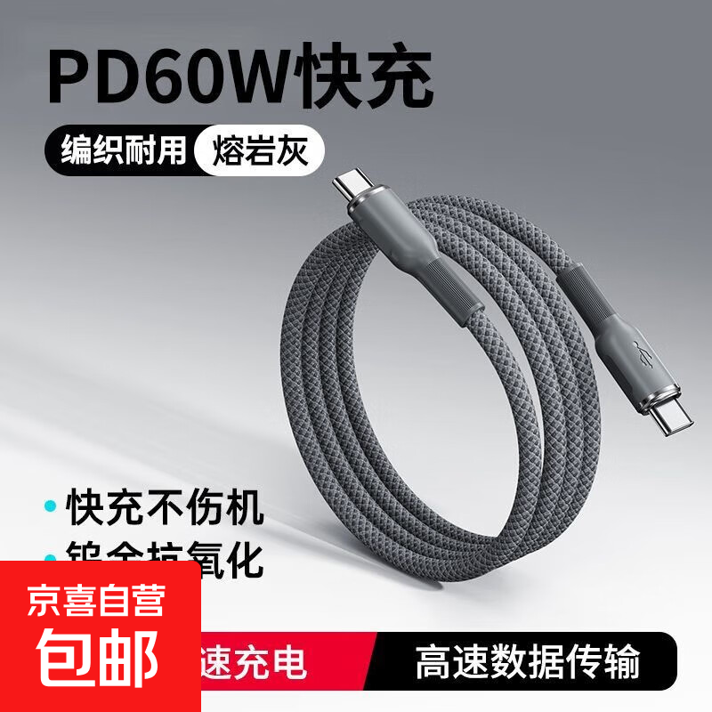 Type-c快充数据线【罗马柱编织线】钨金编织线适用华为荣耀小米vivo手机充电60/100W 【60W真快充】Type-C转Type-C充电线 2米【1条装】