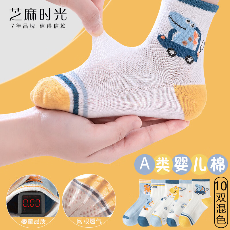 芝麻时光儿童袜子女童男童男孩棉袜亲肤学生数量有限清仓价 可能个别微瑕 恐龙混色 10双 均码 6-8岁【L码】