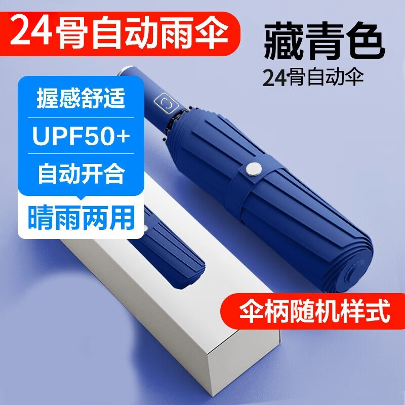 印象城24骨全自动折叠晴雨两用雨伞防晒遮阳伞防紫外线太阳伞双人大号 藏青24骨(加固双人推荐)