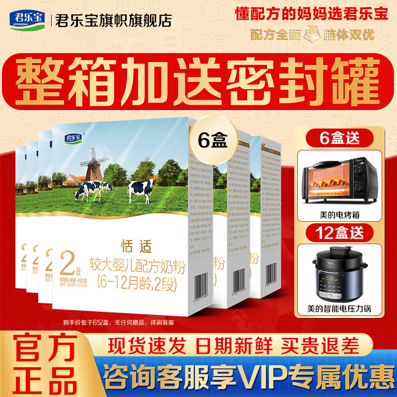 君乐宝恬适2段较大婴儿配方奶粉(6-12个月)400g盒装 2段 400g 6盒