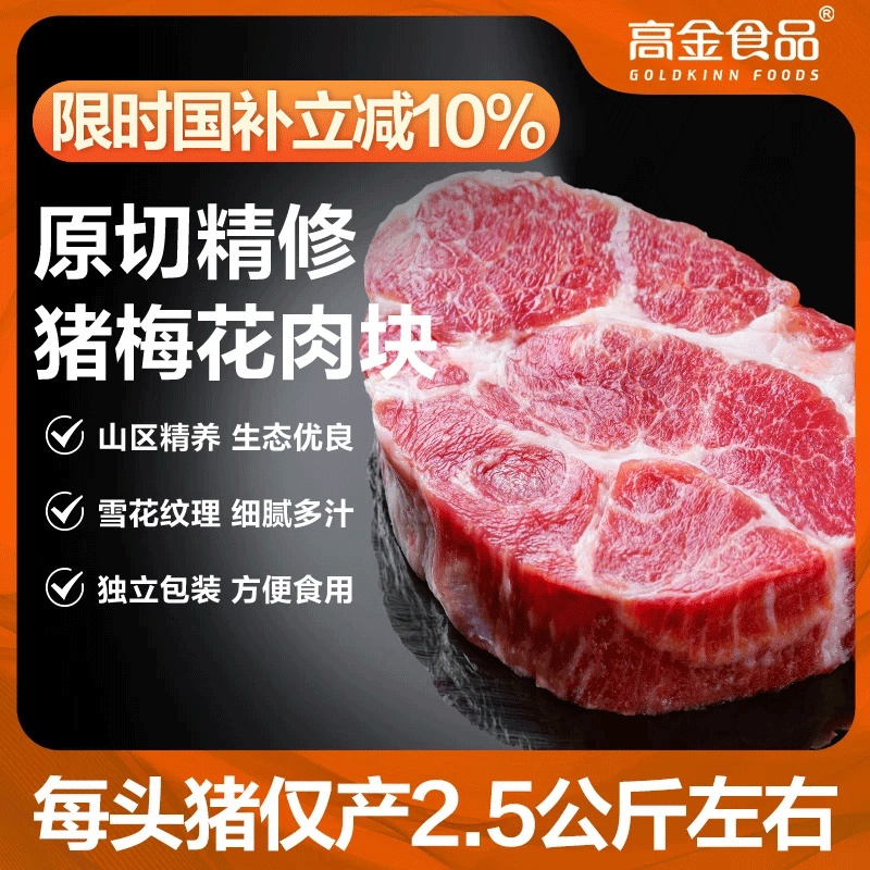 高金食品 贵州 精选猪梅花肉块2.4斤 烧烤食材梅肉猪颈肉猪肉 猪肉生鲜