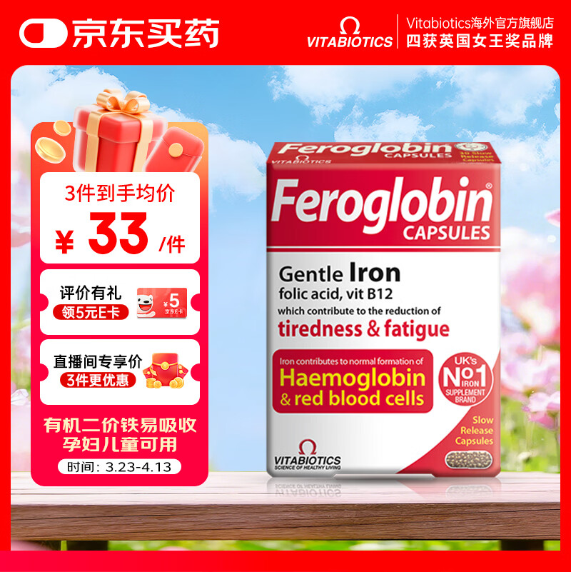 VITABIOTICS薇塔贝尔补铁缓释胶囊 叶酸维B6 成人孕期哺乳期补血可用 【26年8月到期】补铁缓释胶囊 30粒*1盒