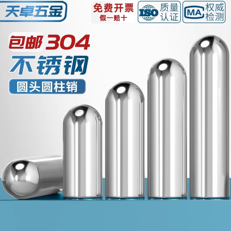 天卓五金圆头圆柱销不锈钢定位销轴销钉实心子顶针光轴圆棒固定滚销子304 Φ4*8【20个】