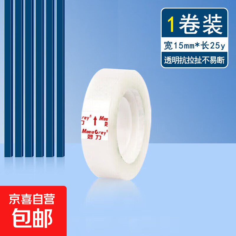 妙力MEEIAOREY透明胶带 文具胶带 透明度高粘性强抗拉扯 花店包花手工diy学生作业用 抗拉透明白 宽15mm*25y【1卷装】