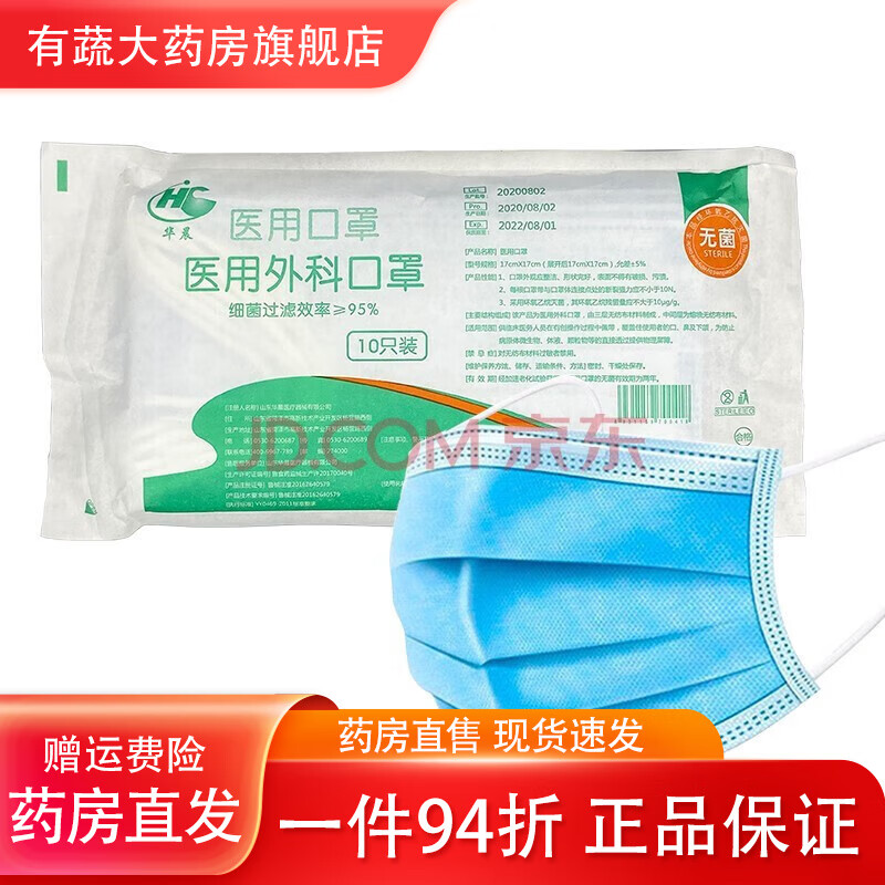 华晨 医用外科口罩一次性三层成人防护口罩 医用外科口罩10只/1包