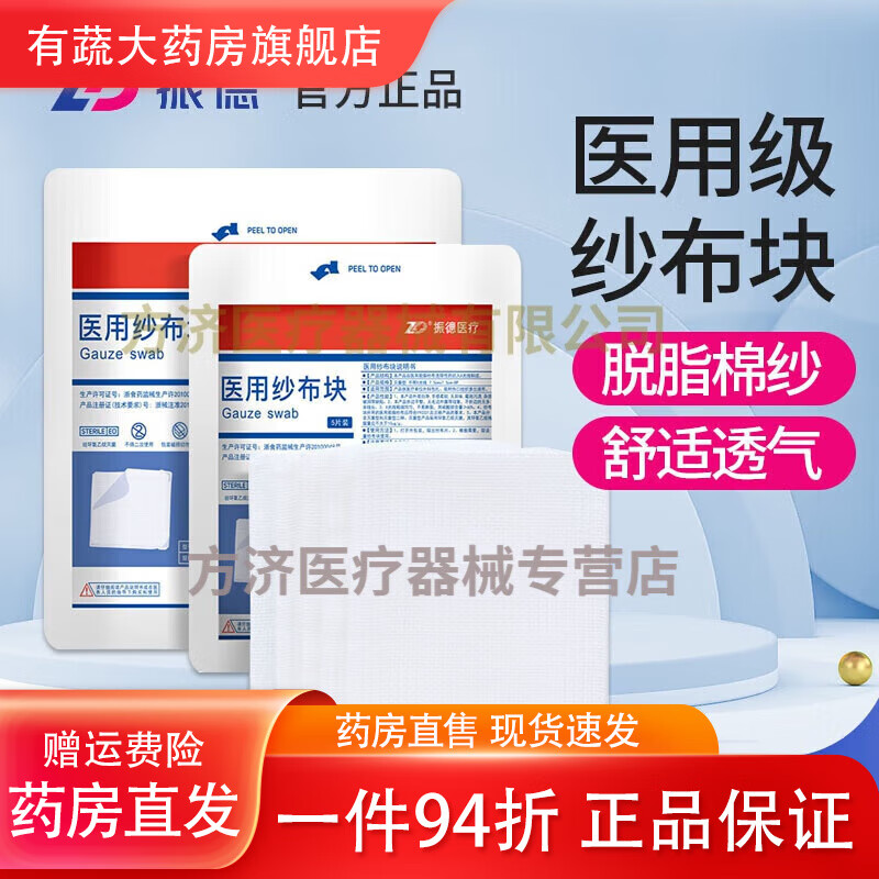振德(ZHENDE)医用纱布块外科伤口包扎敷料一次性无菌小纱布片独立包装 5*5cm*2片/包 5包