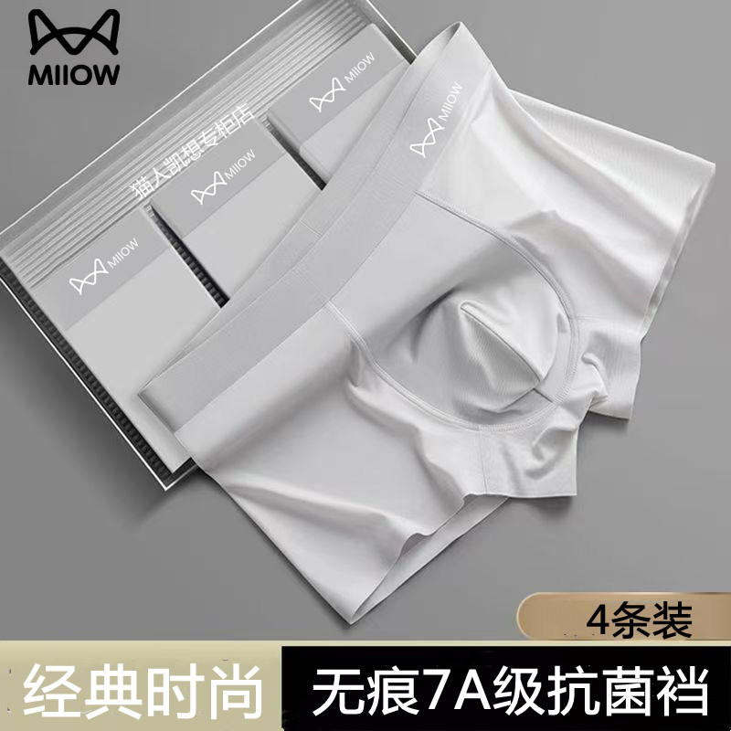 猫人新款浅灰色裸感无痕青少年纯棉莫代尔男士内裤透气平角短裤男
