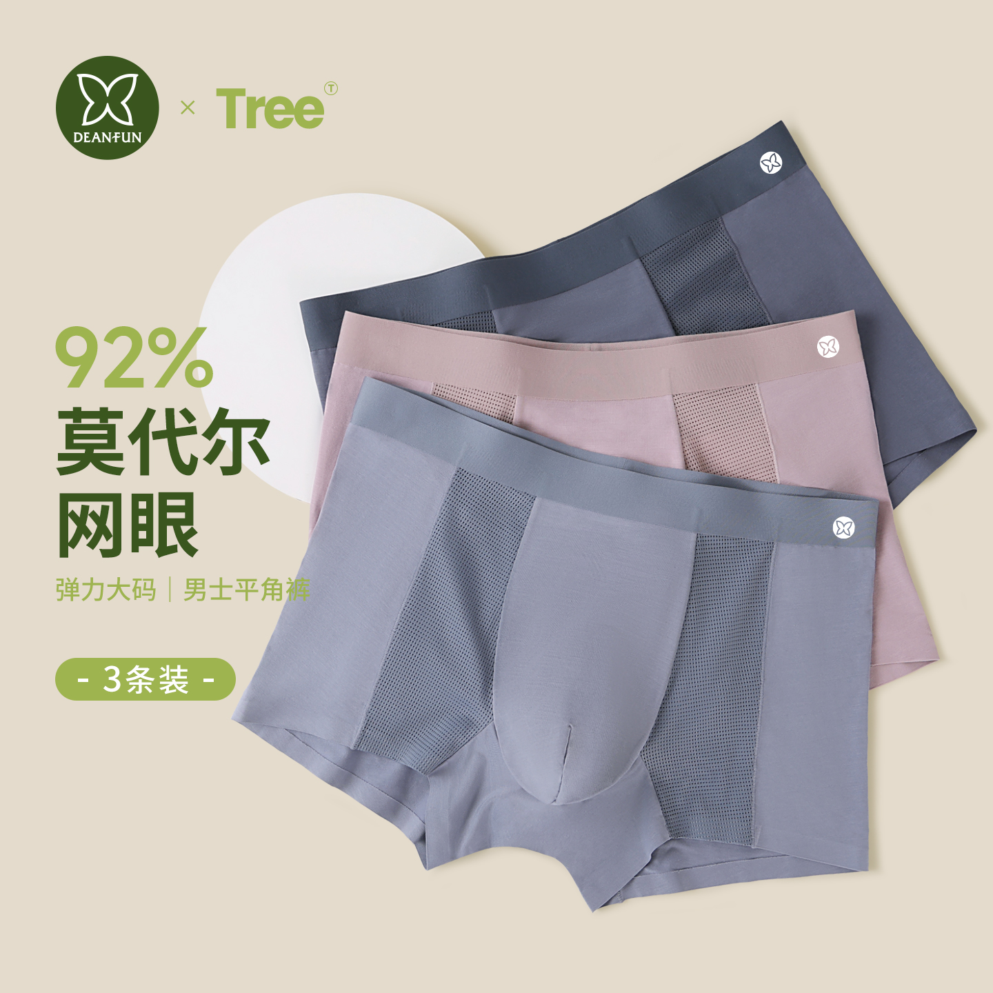 莫代尔男士内裤网眼无痕平角裤男生裤衩大码透气舒适男款四角裤头