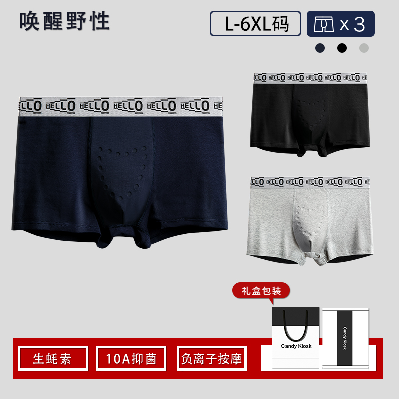 生蚝男士内裤按摩颗粒降敏感防潮湿大码纯棉四角平角唤醒内裤男生