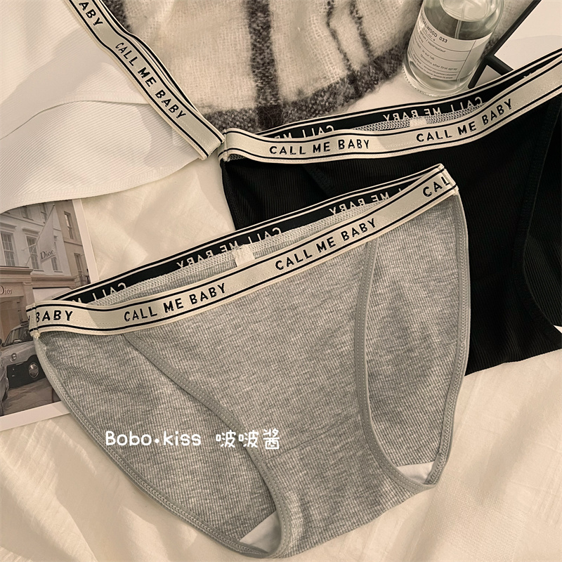 韩版新款2107字母蕾丝边性感五条装包臀高弹透气中高腰三角内裤女
