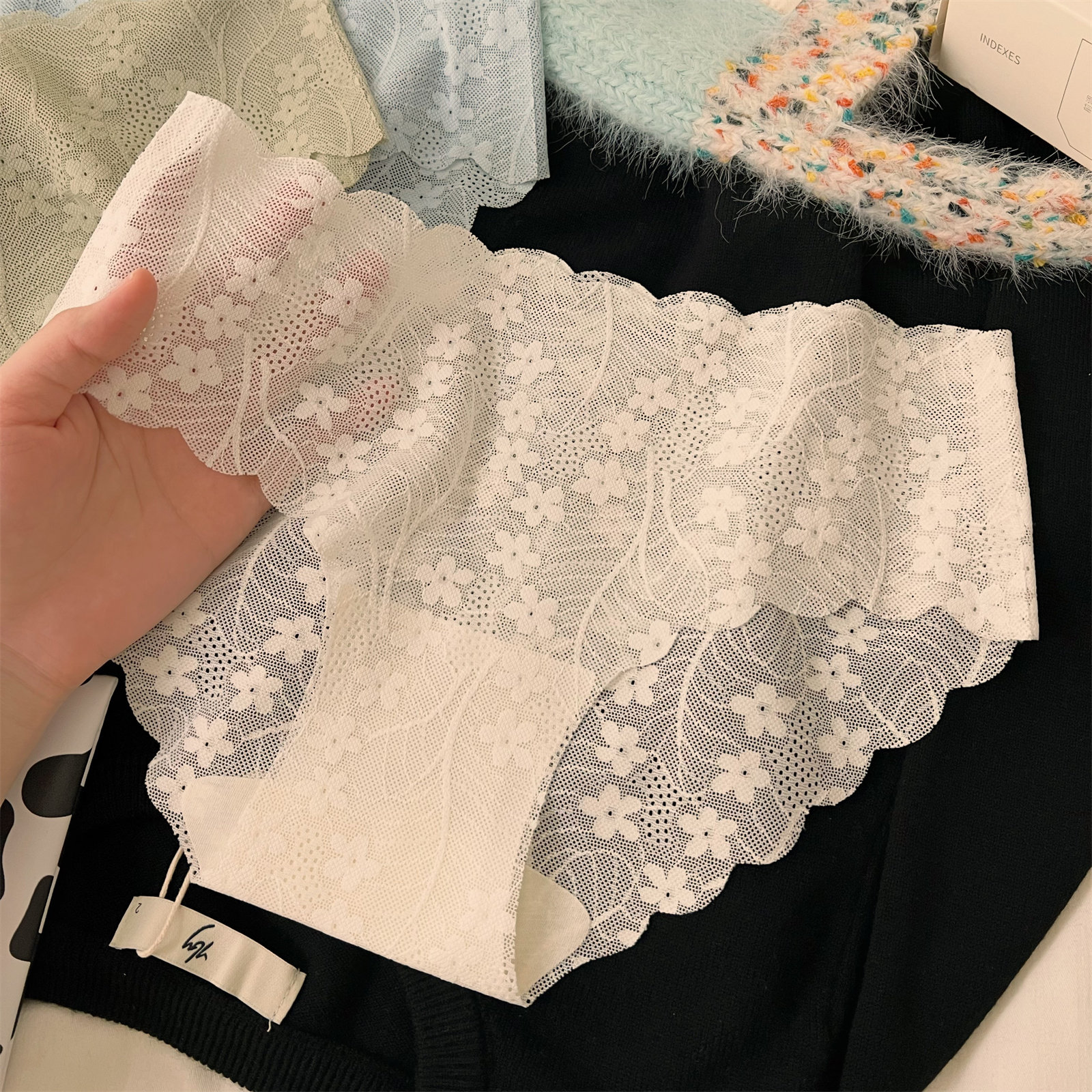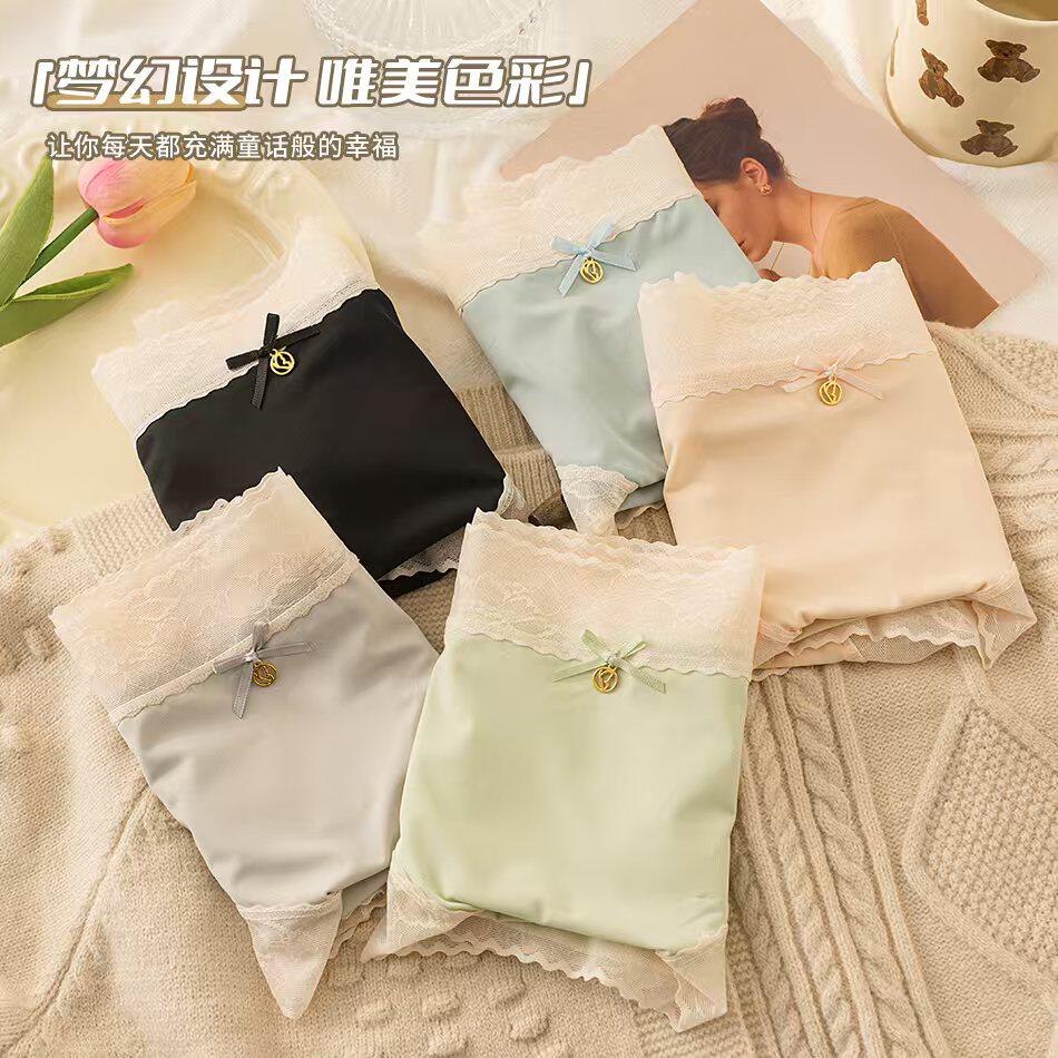 高货新款出口韩国专柜原单女士无痕牛奶丝蕾丝舒适中腰三角内裤